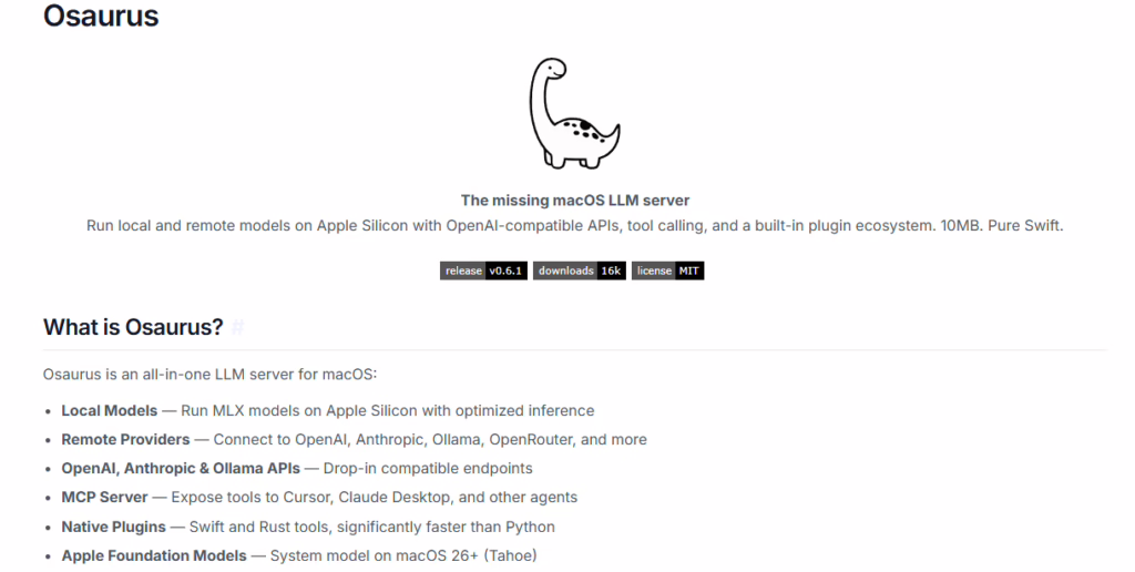 Github:https://github.com/dinoki-ai/osaurus?utm_source=chatgpt.com